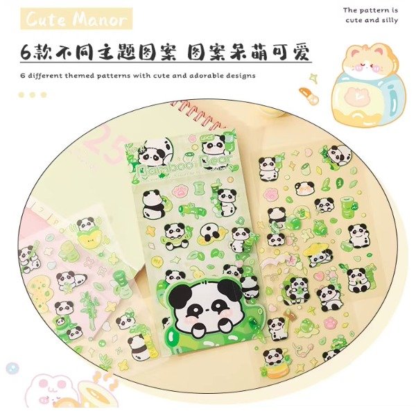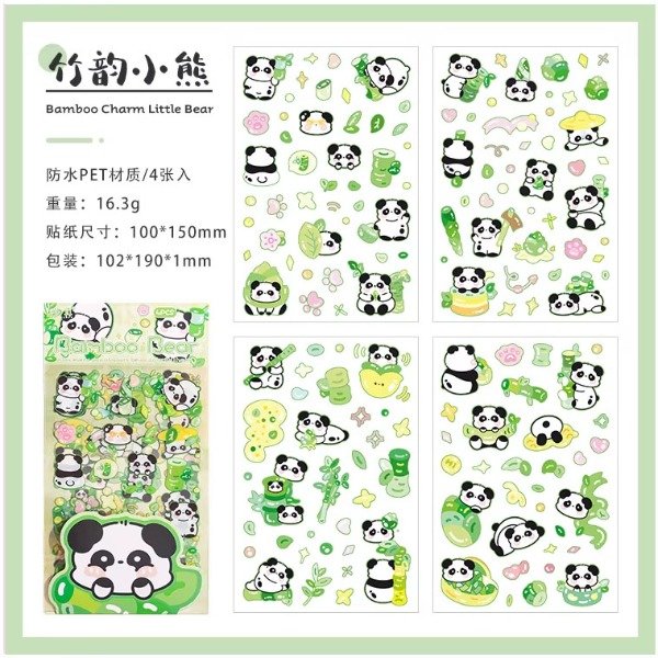 Set de 4 planchas de stickers PET - Bamboo Bear